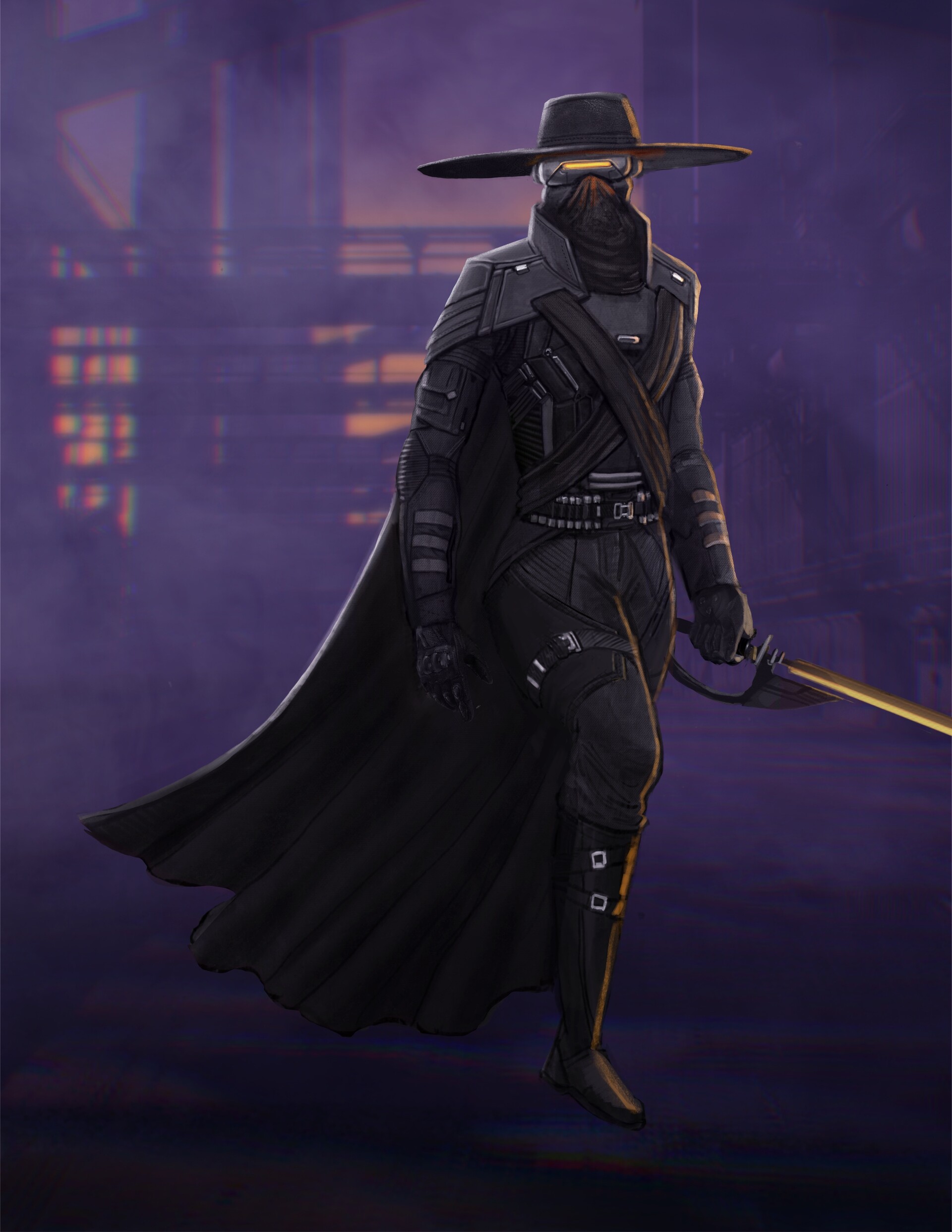 Created as part of a mentorship with Iain McCaig, this is my cyberpunk take on a gender-bent Zorro.